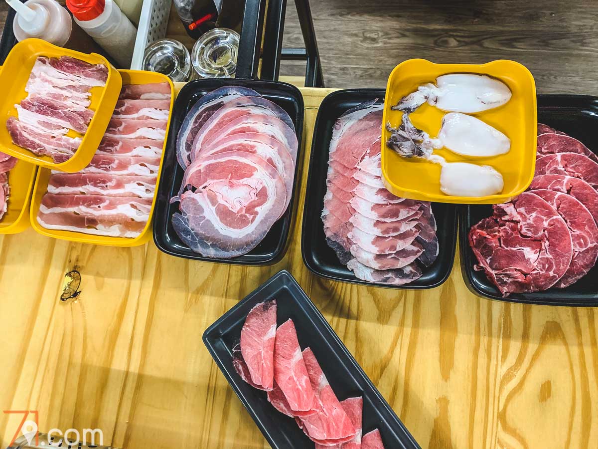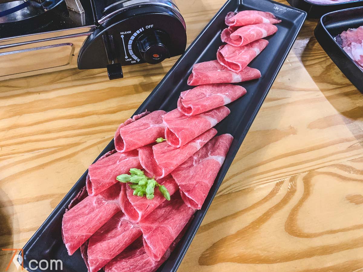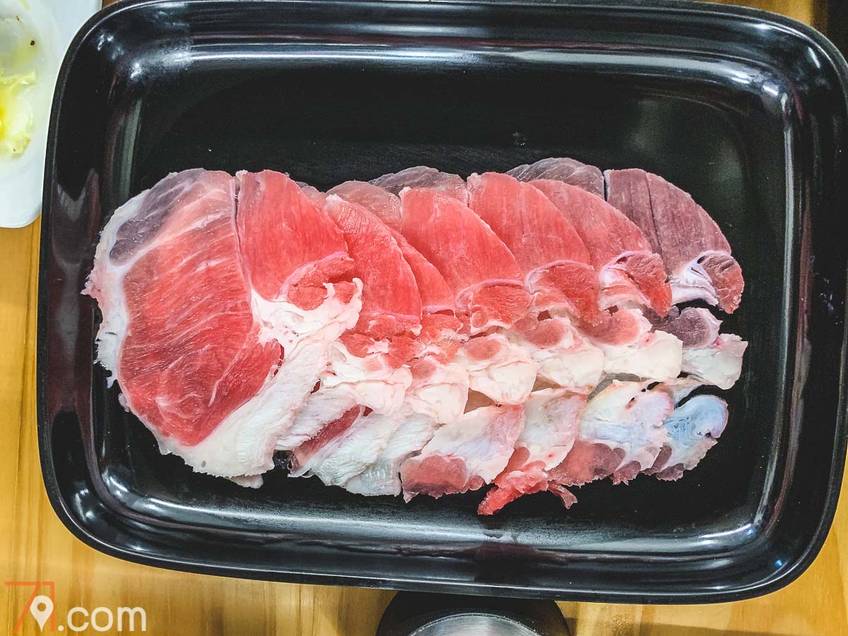 ► อย่างที่สาม “เนื้อดี” แล้วก็มีหลายแบบให้เลือกตามชอบครับ ทั้งใบพาย, ริบอาย, สันคอ, เบคอน, เสือร้องไห้ ฯลฯ ให้แนะนำคือ ลองสั่งมาอย่างละ 1 ก่อน แล้วลองกินที่เราชอบ… จากนั้น ก็ Unlimited กับเนื้ออันนั้นไปเลยย… เนื้อบางชนิดแล่บางมาก (จะบอกว่าเหมือนกระดาษทิชชู่ก็ไม่ผิด) แค่จี่ๆ กับกระทะแป๊บเดียวก็อร่อยแล้ว