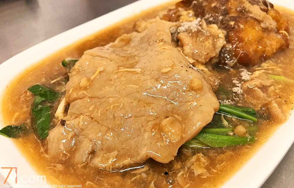 เมนูสุดเบสิกที่นึกถึง เมื่อทานราดหน้าแล้วต้องสั่งก็คือ “ราดหน้าหมู” แต่ที่นี่เค้ามีความไม่ธรรมดาด้วยราดหน้าห่อไข่ที่มาพร้อมเนื้อหมูชิ้นโต ทำให้ราดหน้าจานนี้มีความพิเศษกับราคา 55 บาท แต่ถ้าไม่ใส่ไข่จะอยู่ที่จานละ 45 บาทเท่านั้น