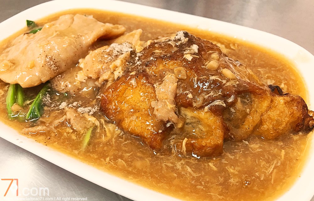 “ราดหน้าหมูห่อไข่ร้านฟาไฉ ราคา 55 บาท”