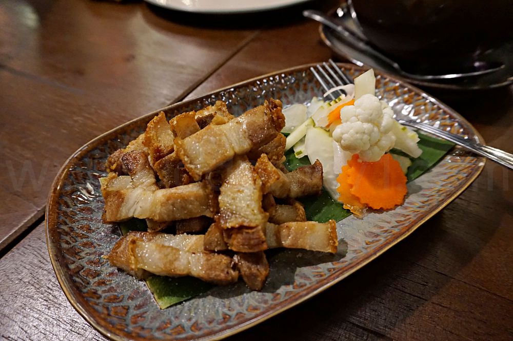 เมนูอาหารของที่ร้านเขียวไข่กาจะเป็นสไตล์อาหารไทยหาทานยาก ไปจนถึงอาหารไทยพื้นบ้าน เมนูเบสิกจ๊ะเอ๋เหมือนร้านทั่วๆไปก็มีนะ แต่น้อย ชื่อเมนูไม่ค่อยคุ้นหูเราเท่าไหร่นัก เช่น แกงขาหมูชะมวง แกงคั่วปูใบชะพลู แกงฮังเล ยำไหลบัว ปลาช่อนเขียวไข่กา แตงโมปลาแห้ง ฯลฯ จานชามหม้อไหที่นี่ก็มีความตั้งใจเลือกเพื่อให้เข้าคอนเซปของร้าน