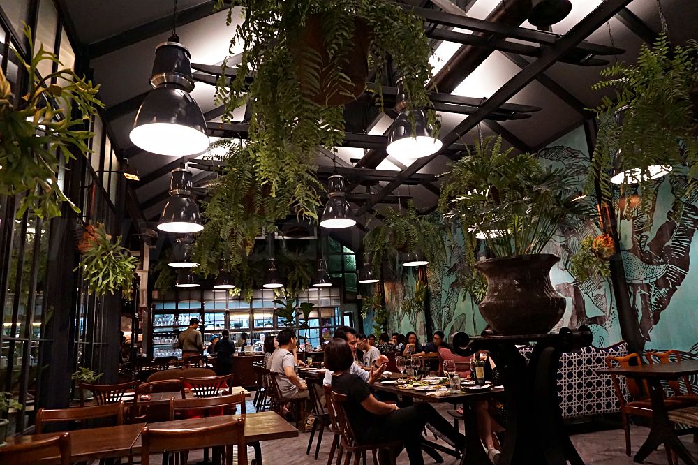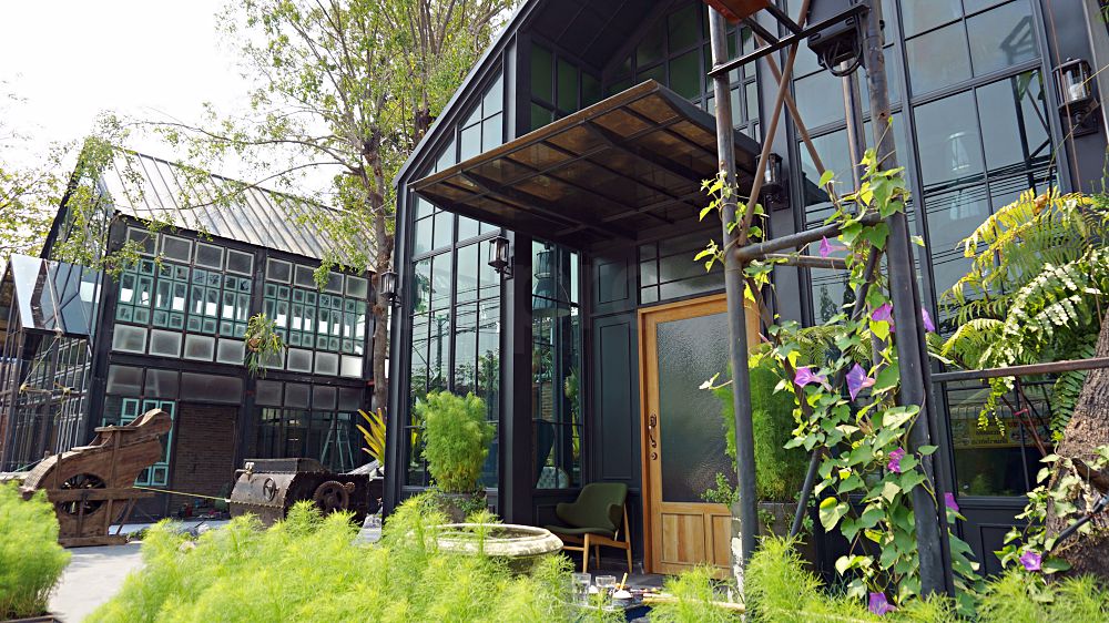 ด้านในเรือนกระจกโดดเด่นด้วยเฟิร์นฟุ่มใหญ่ที่แขวนภายในร้านห้อยลงมาทั้งด้านบนและแซมด้านข้างอีกที สลับแสงจากโคมไฟให้แสงสีส้มนวลตา ส่วนโต๊ะเก้าอี้โซฟาใช้สไตล์วินเทจคลาสสิก ทำให้บรรยากาศรวมๆดูแล้วเท่ๆสไตล์ทรอปปิคอล