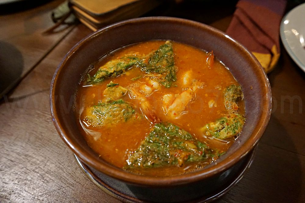เมนูที่ทางร้านแนะนำก็เช่น เมี่ยงคำ ต้มยำปลาทู ยำไหลบัว ขนมจีนน้ำยาปู ฯลฯ แต่เราลองสั่งอาหารที่ทานง่ายๆ มาลองกันก่อน ดีกว่าเช่น ไข่เจียว