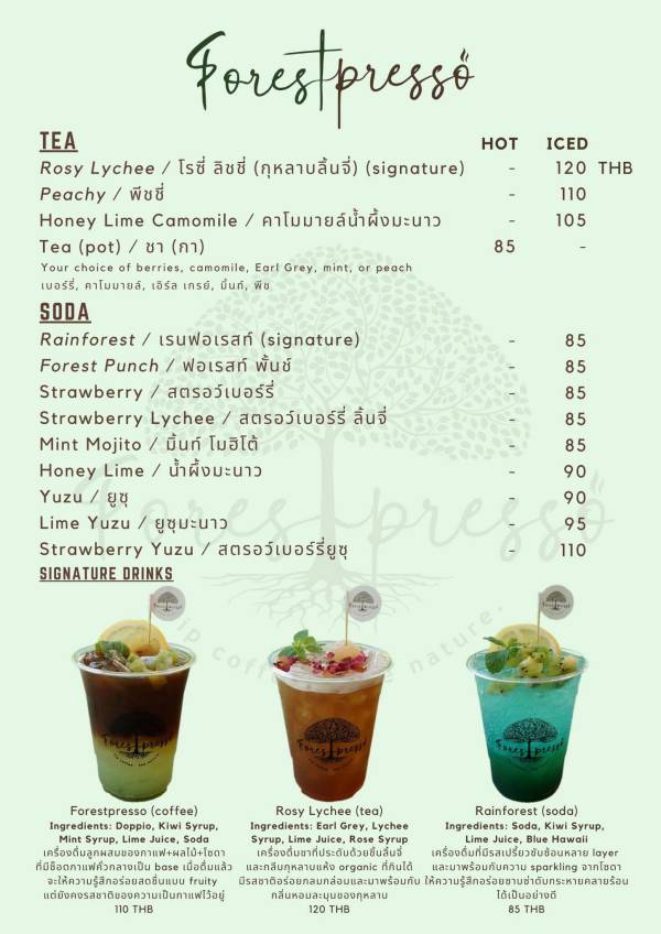 เมนูอาหารเครื่องดื่มร้าน Forestpresso