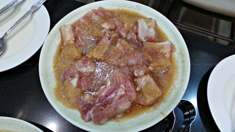 ด้านล่างคือ ซี่โครงหมูหมัก 150 บาท และหมูสามชั้น
