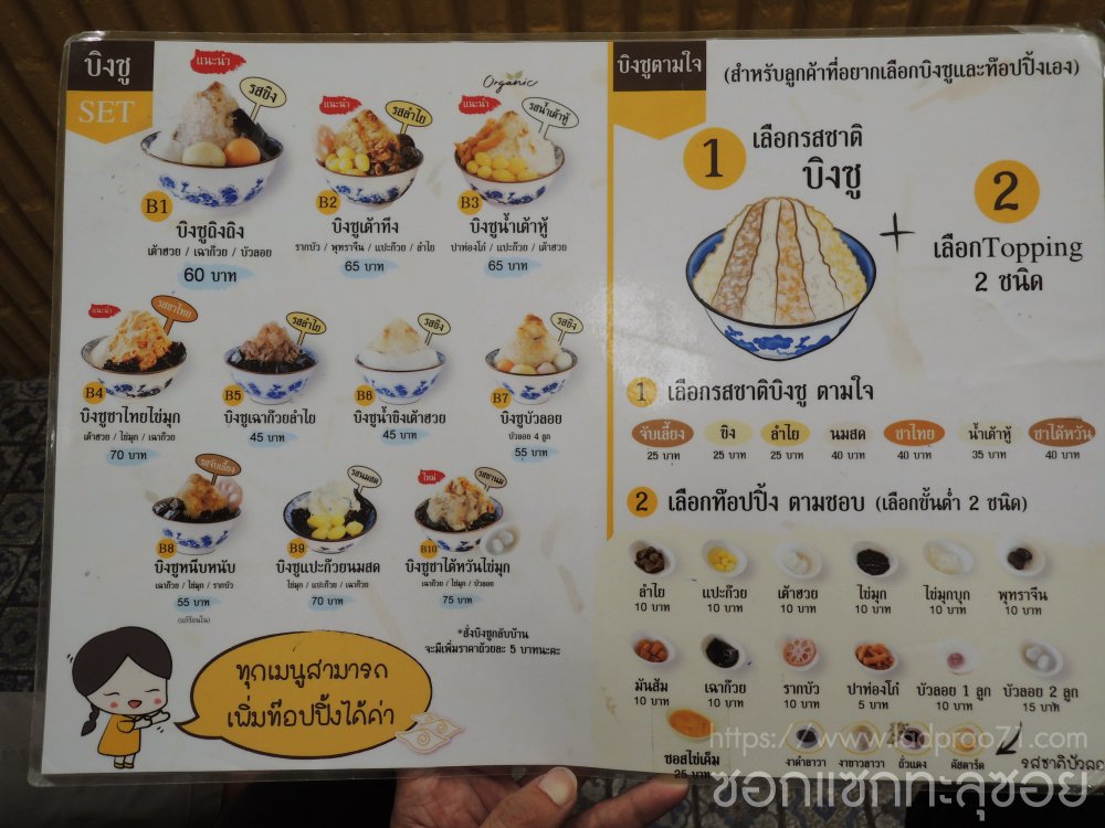 ที่นี่.. คือร้านขนมหวานลูกผสมระหว่าง ไทย-จีน เข้าด้วยกัน อย่างบัวลอย เฉาก๊วย เต้าฮวย น้ำขิง ทั้งร้อน-เย็น หรือ บิงซูน้ำขิง บิงซูจับเลี้ยง หรือบิงซูน้ำเต้าหู้ ก็ดูน่าอร่อยน่าลอง [อ่านรีวิวร้านนี้]