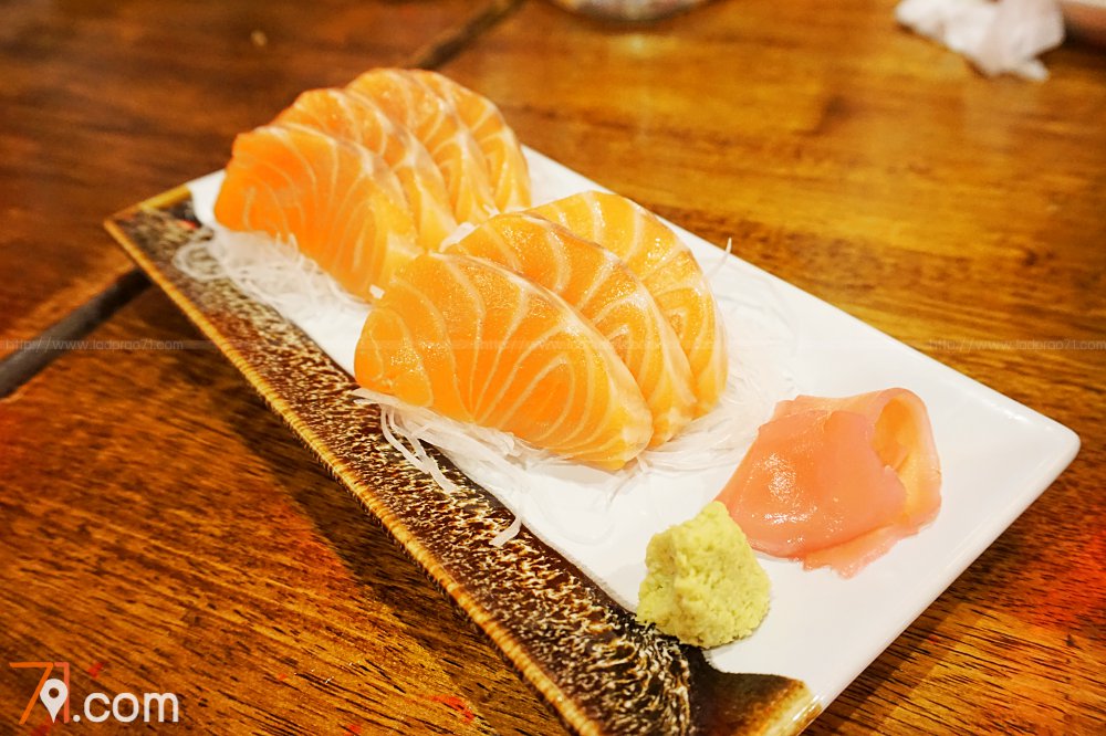 ที่ร้านนี้เค้าใช้แซลม่อนสดในทุกเมนู รวมถึงแซลมอนซาซิมิจานนี้ด้วย เนื้อแซลม่อนไม่กระด้างป่นเพราะไม่ได้แช่แข็งเก็บไว้และ ไม่ว่าจะทำอะไร จะแล่เนื้อแซลม่อนสดๆไปทำในทุกๆ เมนู