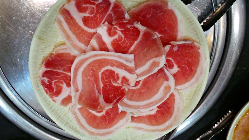 ด้านล่างคือ ซี่โครงหมูหมัก 150 บาท และหมูสามชั้น