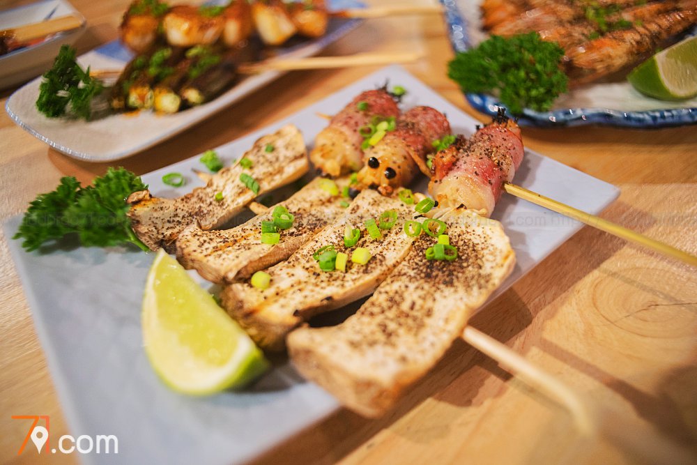 อาหารจะเป็นสไตล์ญี่ปุ่นอิซากายะ มีทั้งแบบปิ้งย่างเสียบไม้ (แนะนำกุ้งย่างเกลือ/หมาล่า) ทงคัตสึต่างๆ เกี๊ยวซ่า ไก่คาราเกะ ไก่เทอริยากิ กุ้งเทมปุระ ปลาดิบ นาเบะ รวมๆแล้วมากกว่า 70 เมนู และมีเบียร์คราฟนำเข้าหลายยี่ห้ออีกด้วย
