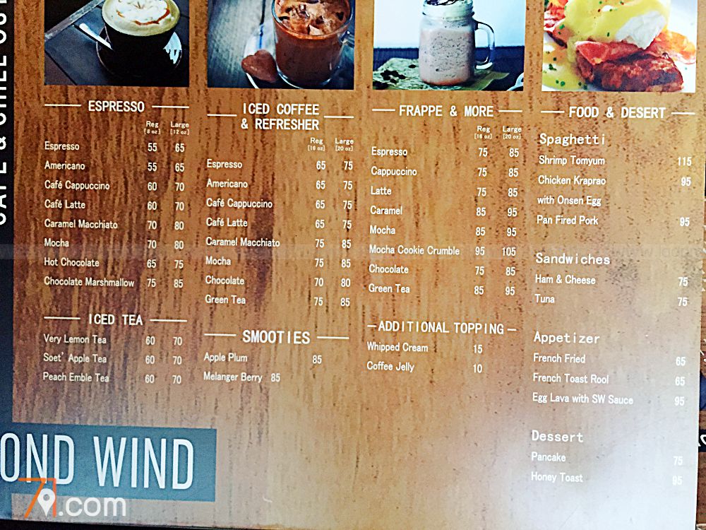 มาดูเมนูของทางร้าน Second Wind Coffee กันบ้างดีกว่า ร้านกาแฟแต่มีทุกอย่างเลยน้า ทั้ง ชา กาแฟ โทส ของว่าง อาหาร สปาเก็ตตี้ ส่วนเรื่องราคาถ้าเทียบกับร้านหรูติดแอร์ละแวกนี้ก็แอบแพงอยู่น้าาา เอาน่า บรรยากาศดี Free WIFI นั่งสบายๆ ก็คุ้มละ